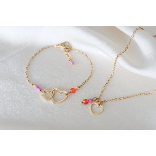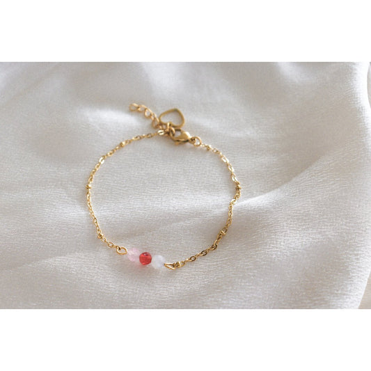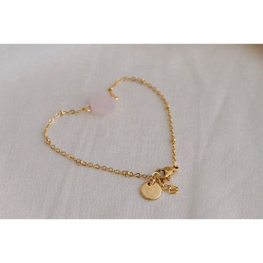 Rozenkwarts Hart Armband & Hart Bedel - Goud