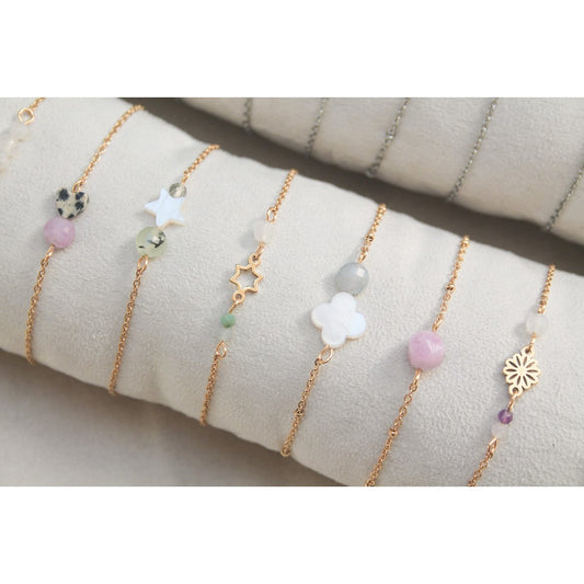 Armbandje Jaspis Hartje & Chalcedoon - Goud
