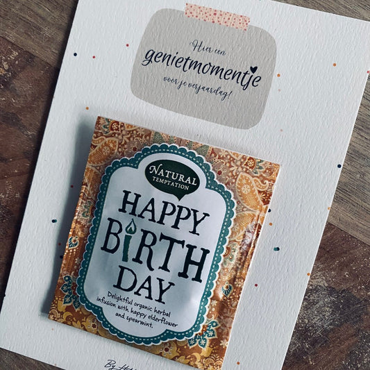Thee kaart "Een genietmomentje voor je verjaardag"
