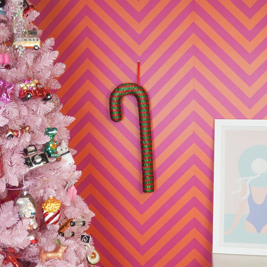 Kerstdecoratie - Zuurstok - Schuim - Groen/Rood - 52cm