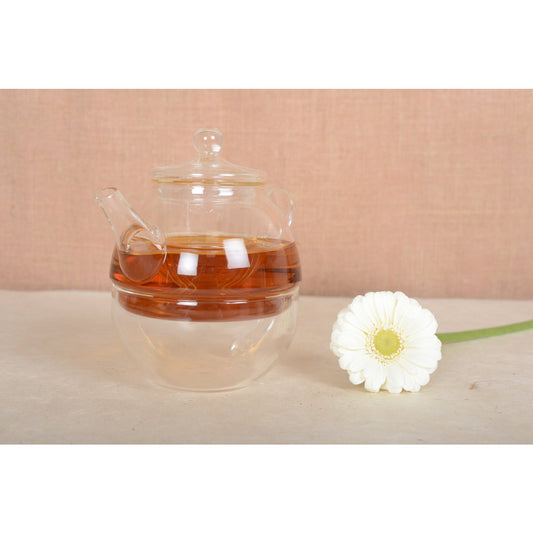 GLAZEN THEEPOT MET HOUTEN HANDVAT