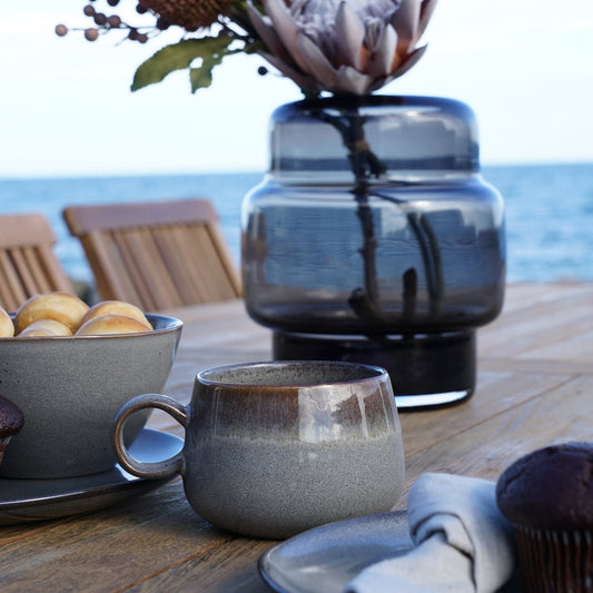 Mok, keramiek, grijs/bruin, ø10x7,5 cm, set van 4