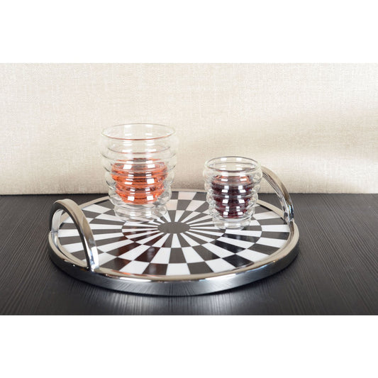 ROND DIENBLAD MET ZWART-WITTE RUITEN 28CM