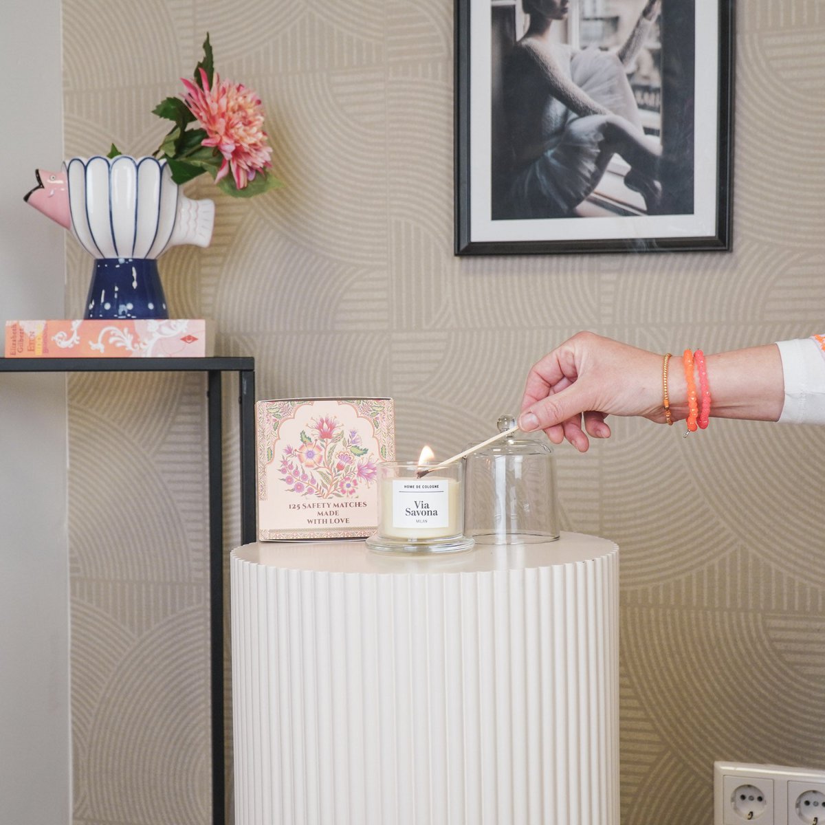Plaats de kaars in je woonkamer, slaapkamer of hal – overal waar je een vleugje luxe geur en design wilt toevoegen.