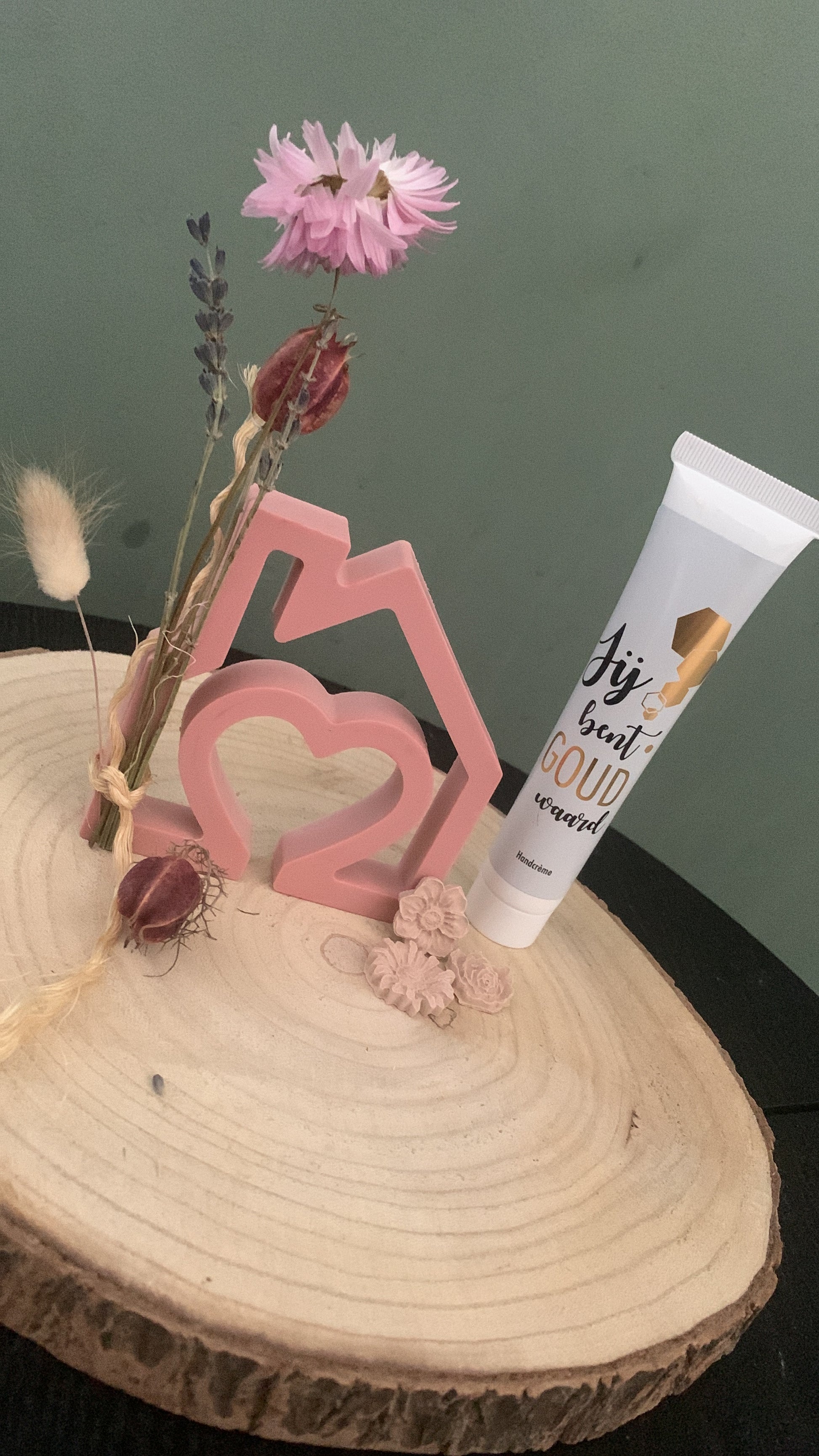 Ik heb dit porseleinen beeldje met de hand gemaakt – in de vorm van een huisje, met een hart in het midden. Een symbool voor warmte, thuiskomen en liefde. Het perfecte kleinigheidje voor iemand die je dierbaar is. Of misschien wel voor jezelf, als herinnering aan wat écht belangrijk is.