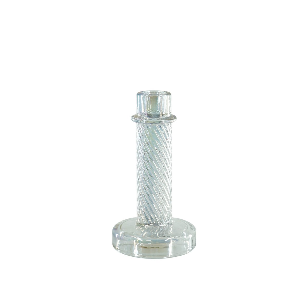 Licht het op! Een eettafel zonder kaarsen is een no go. Deze glazen kandelaar van Housevitamin past perfect bij elke tafel en in elk interieur. Het elegante reliëf geeft de houder een chique en speelse uitstraling, en met een dinerkaars erin creëer je direct een warme, gezellige sfeer.