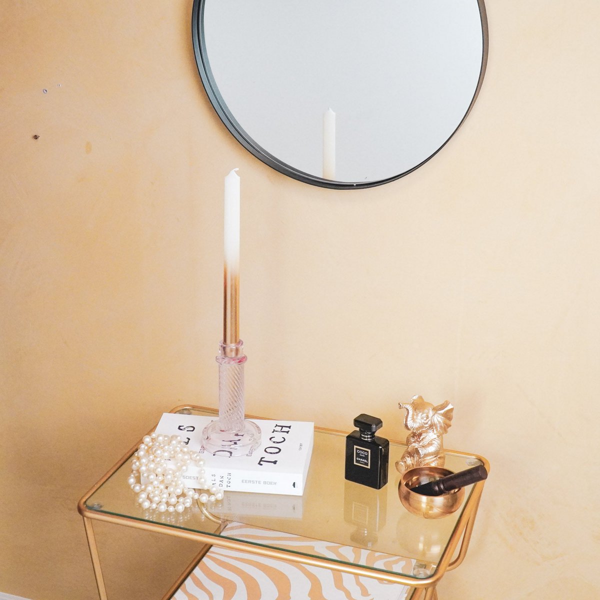 Licht het op! Een eettafel zonder kaarsen is een no go. Deze roze glazen kandelaar van Housevitamin past perfect bij elke tafel en in elk interieur. Het elegante reliëf geeft de houder een chique en speelse uitstraling, en met een dinerkaars erin creëer je direct een warme, gezellige sfeer.