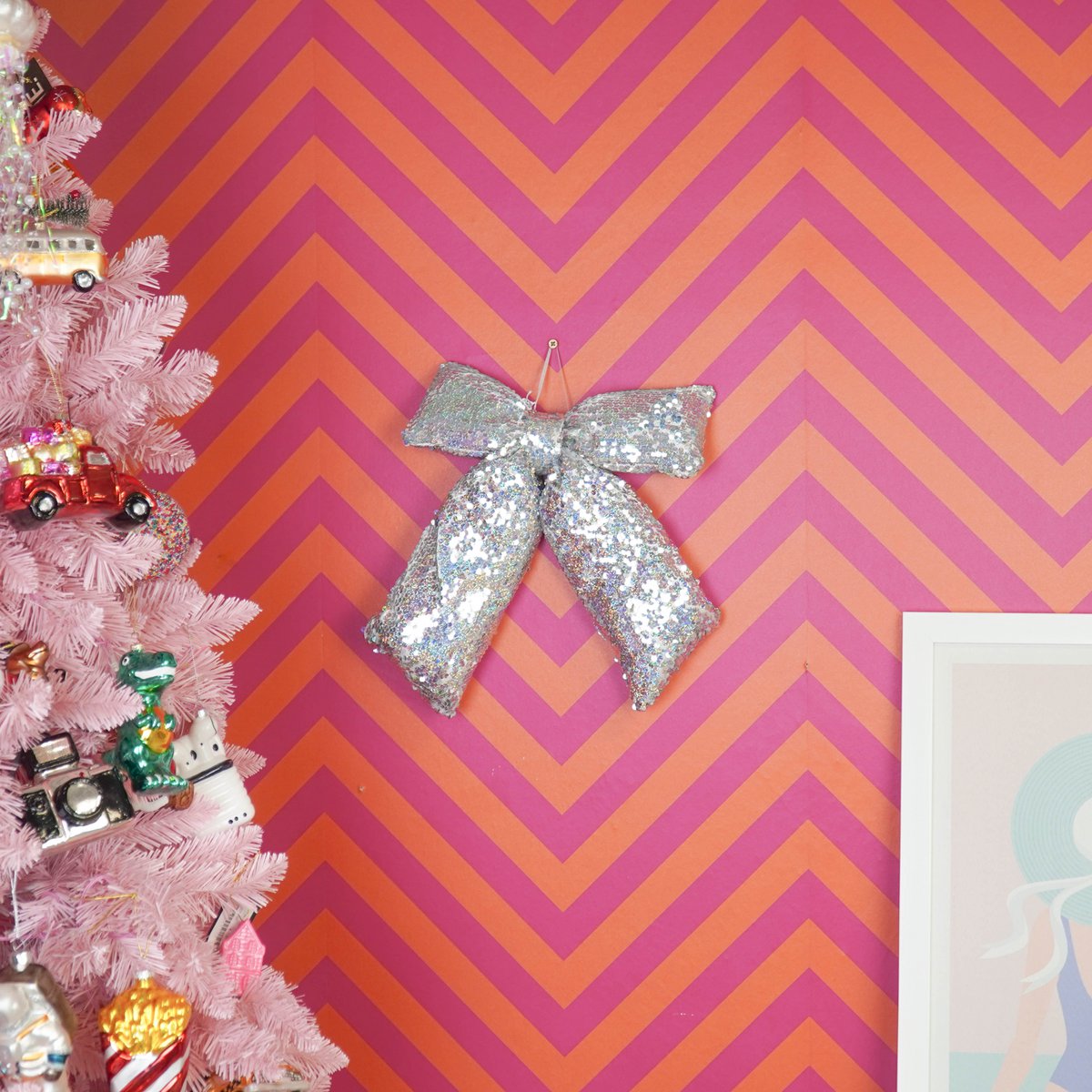 Kerstdecoratie - Strik - Pailletten Stof - Zilver - 32x40cm