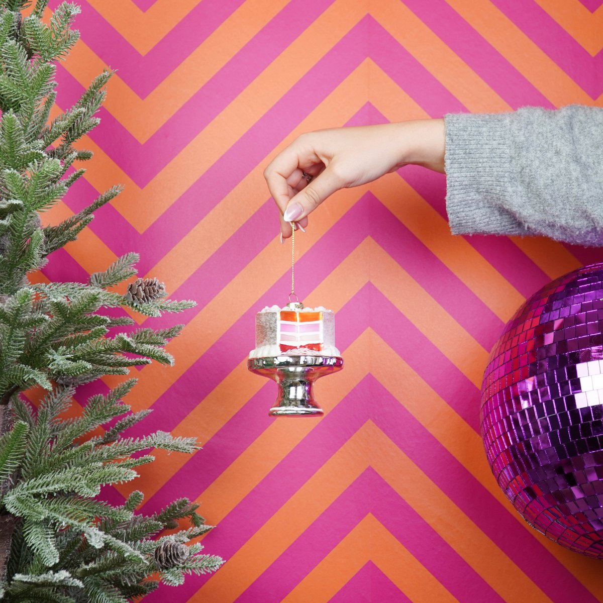Kersthanger - Taart - Glas - Roze - 9x11cm