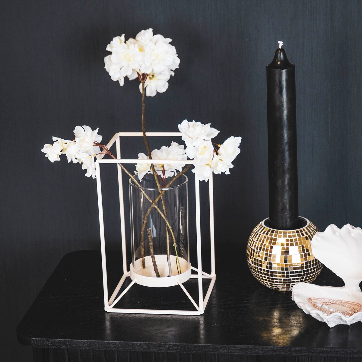 Shine A Light! Metaal en glas vormen samen de perfecte combinatie. Dit stijlvolle windlicht van Housevitamin straalt elegantie uit en voegt direct sfeer toe aan je interieur. Dankzij het glas en het metalen frame schittert het licht prachtig en creëer je een warme ambiance.