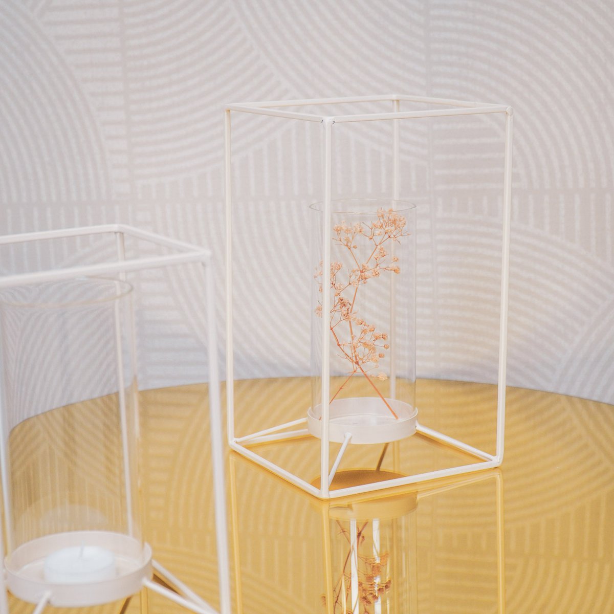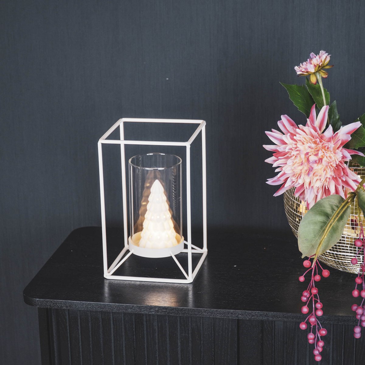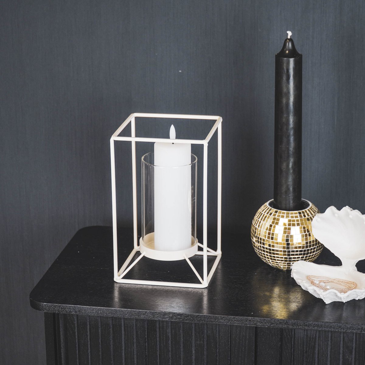 Lantaarn - Metaal/Glas - Wit - 12,5x12,5x20cm