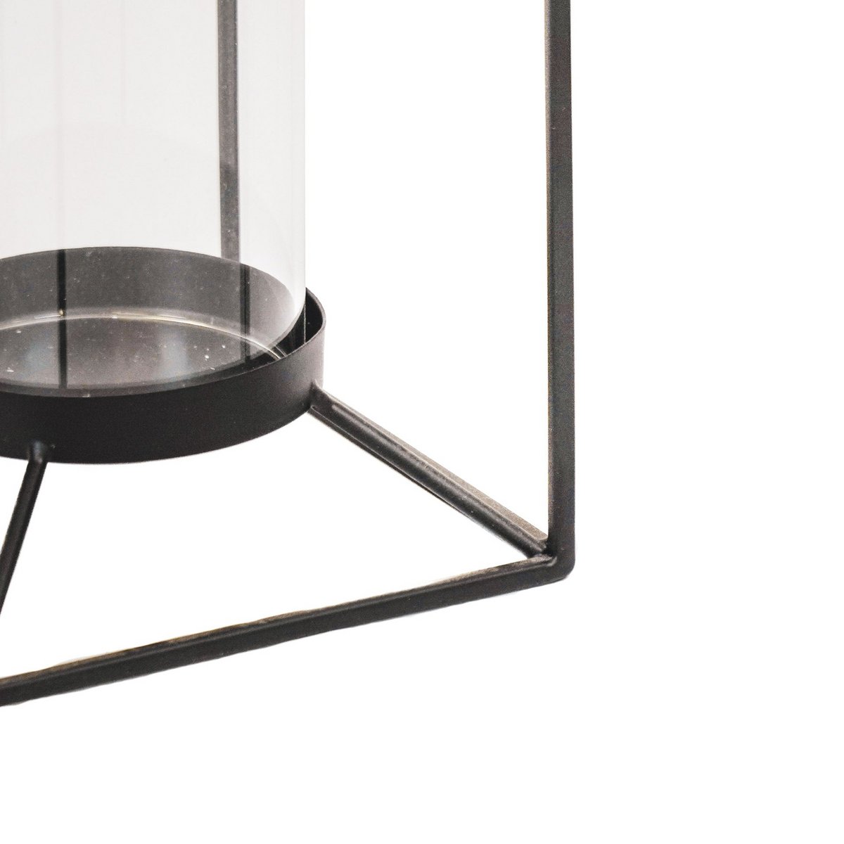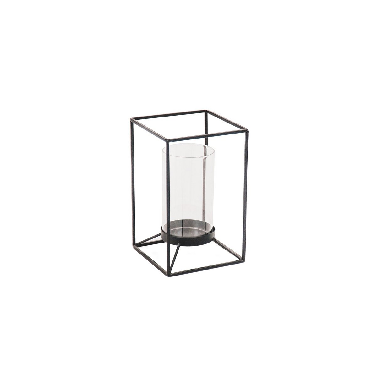 Lantaarn - metaal/glas - zwart - 12,5x12,5x20cm