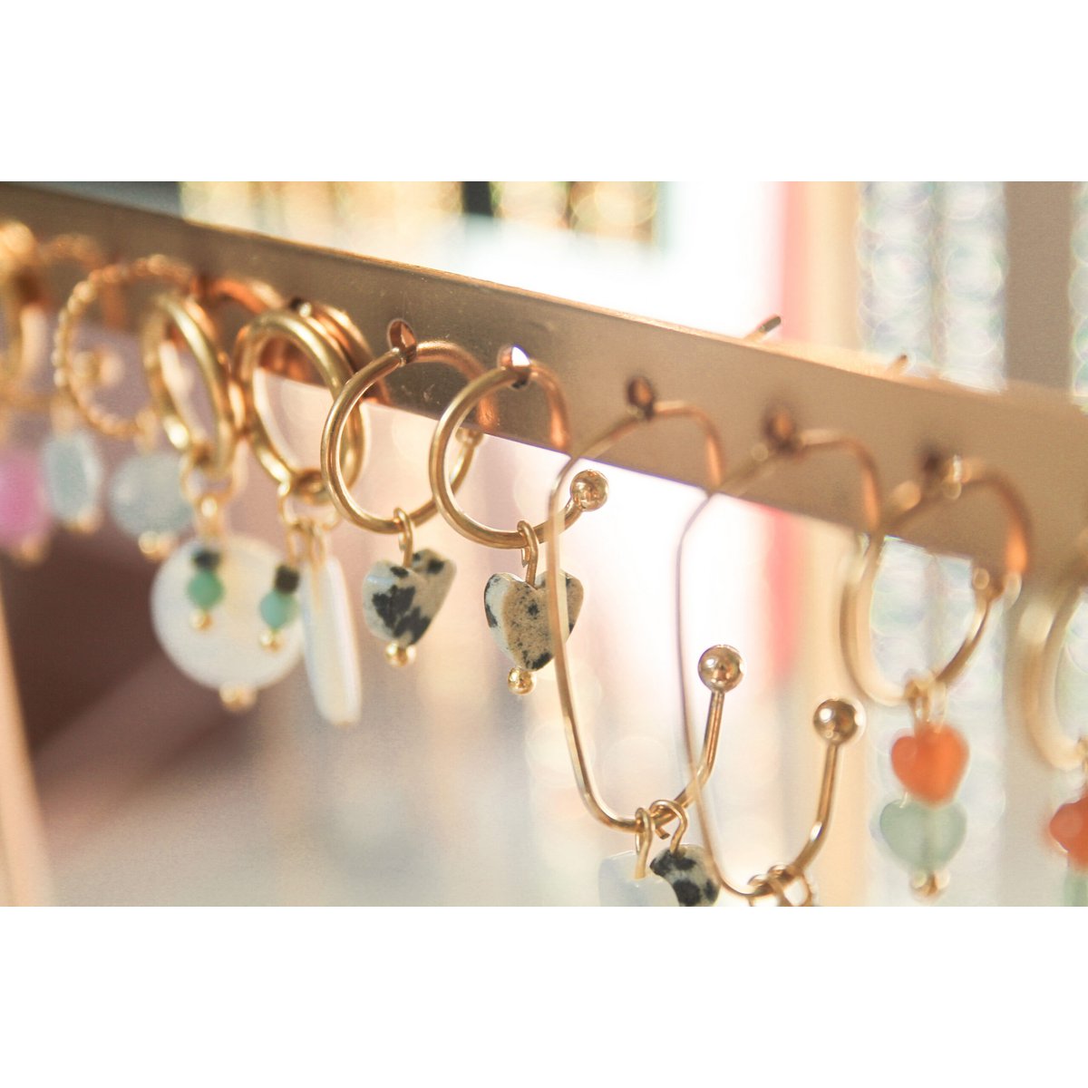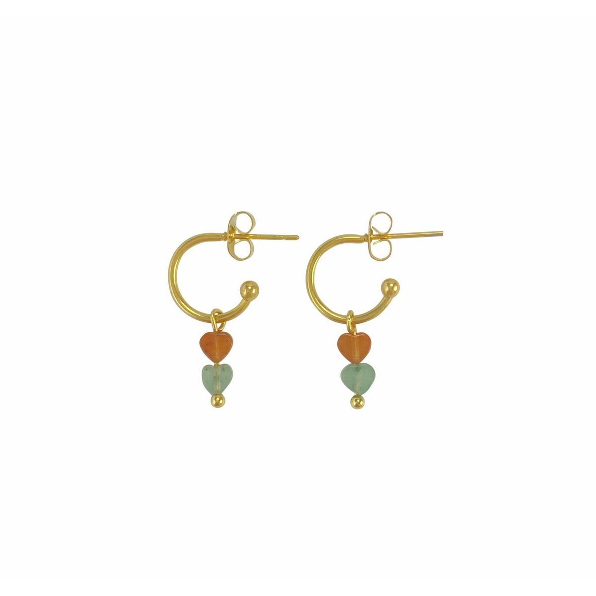 Stainless steel oorringetjes met rode en groene Aventurijn hartjes. De steentjes zijn allemaal uniek en kunnen van licht tot donker groen/rood variëren.