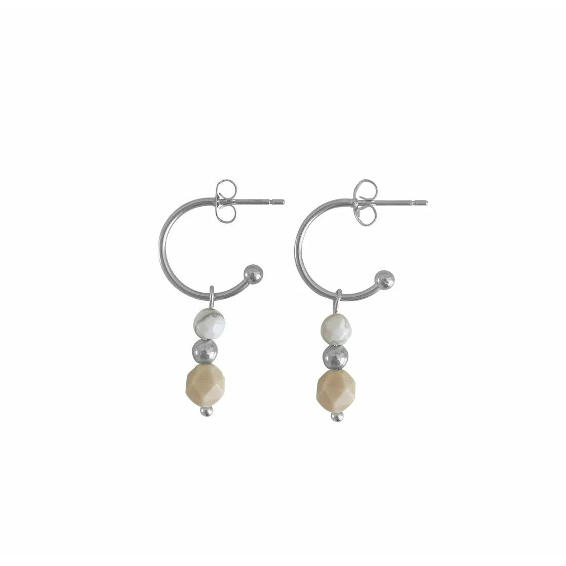 Stainless steel oorringetjes met een facet geslepen Howliet steentje, een Stainless steel kraaltje en een facet geslepen Jade steentje.