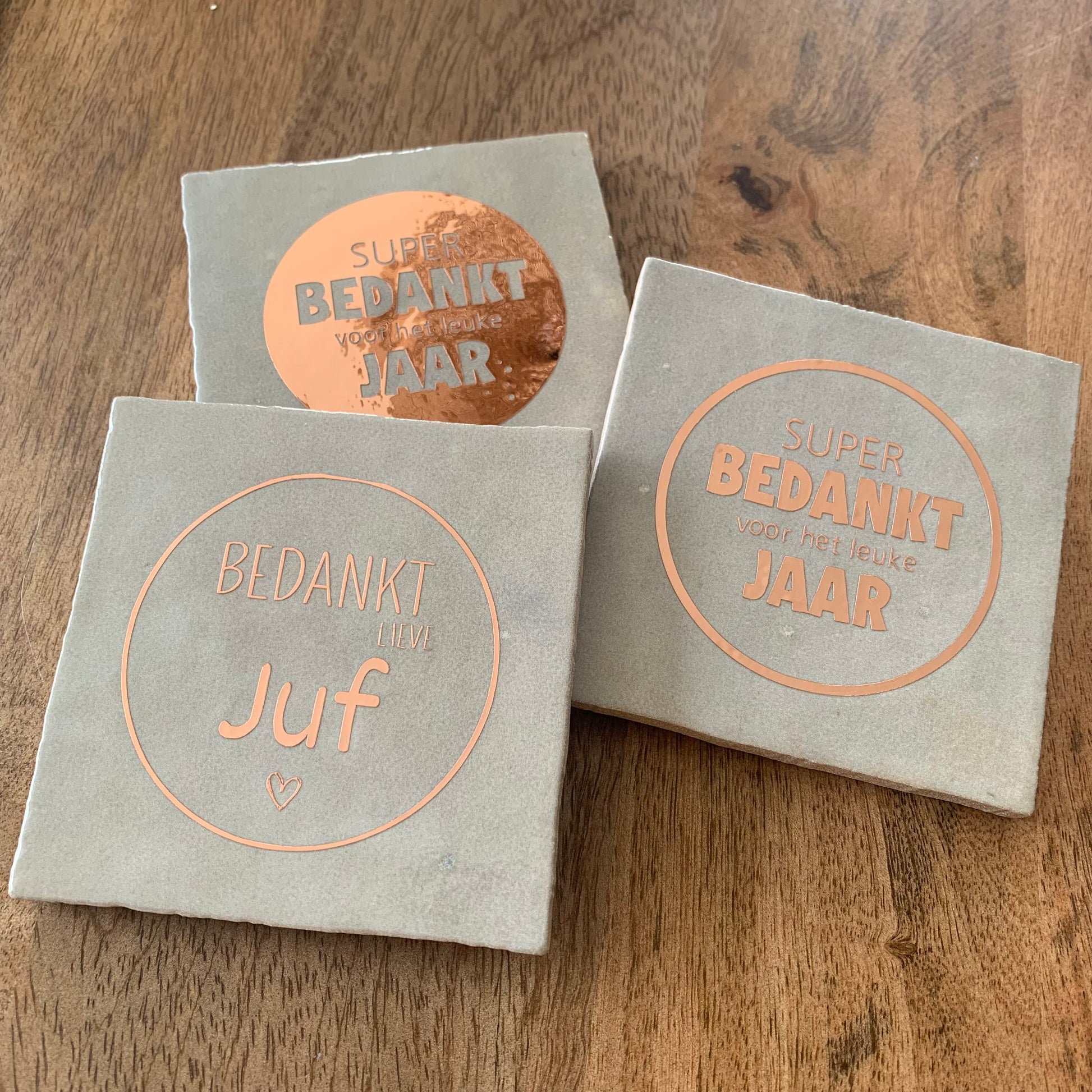 De zachte beige/grijze kleur van het tegeltje combineert prachtig met de rosé spiegeltekst. En wil je liever een persoonlijke boodschap? Stuur me gerust een berichtje – ik maak met liefde een tegeltje op maat.
